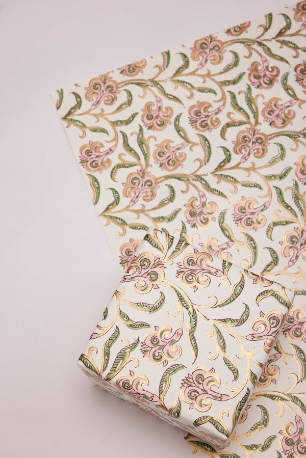 Our beautiful range of premium gift wrap is hand block printed on ivory cotton paper using 2 or more colours.