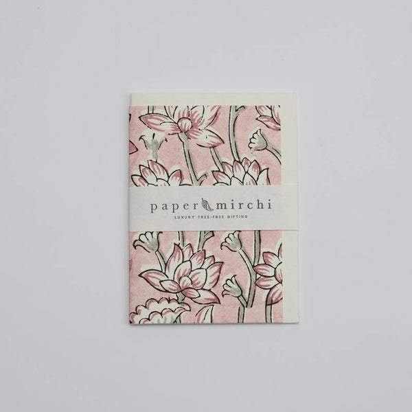 cards is a real delight for any stationery lover. Each card is hand block printed by a skilled artisan on luxurious tree-free 250gsm cotton cardstock and is accompanied by a luxury peel and seal envelope which is hand block printed in the matching on the reverse for understated appeal. No two cards are the same, making them truly unique. The card and envelope are neatly held together with a tree-free belly band. The card can be easily framed to become a beautiful ornament or keepsake. They are blank inside. Size A6. A6 (14.8 x 10.5cm). 100% recycled cotton paper.